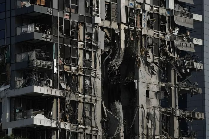 Một tòa nhà ở Ramat Gan (Israel) bị trúng tên lửa của Iran. (Ảnh: AP)