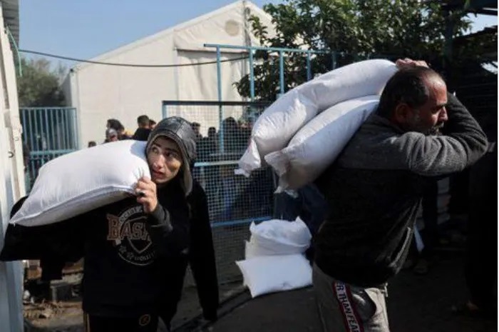 Người dân tại Gaza nhận hàng viện trợ do UNRWA phân phối. Ảnh: Reuters.