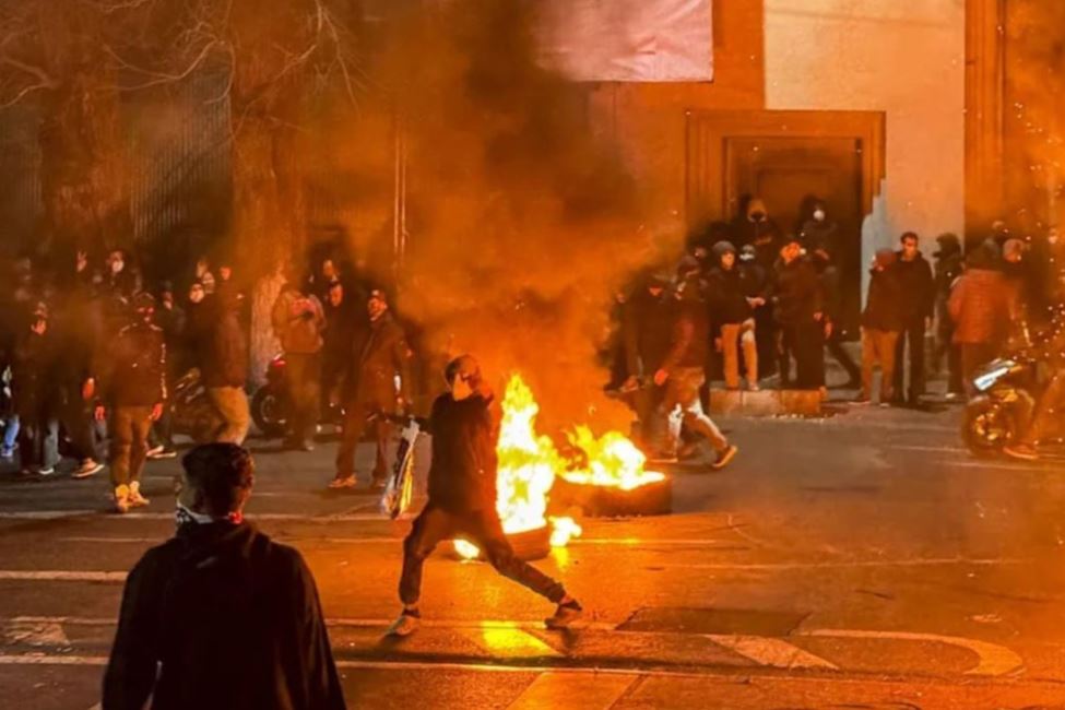 Người biểu tình đốt lửa trên đường phố Iran. Ảnh: Bloomberg