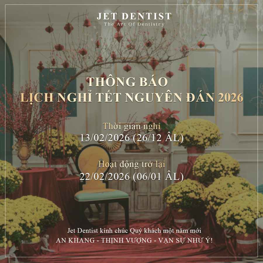 Để phục vụ Quý khách tốt nhất trong dịp đầu xuân, Jet Dentist trân trọng thông báo lịch nghỉ Tết Nguyên Đán 2026 như sau: