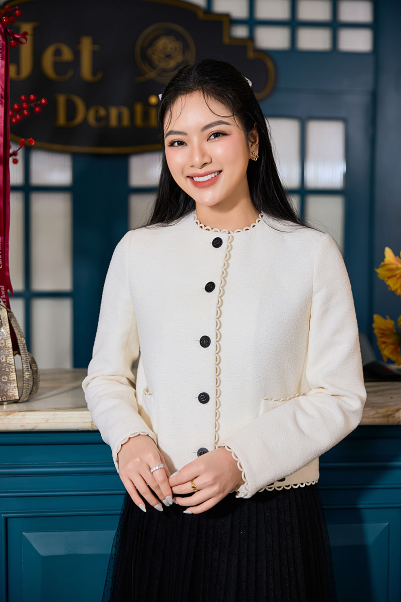 Á hậu Chế Nguyễn Quỳnh Châu vừa khoe nụ cười mới rạng rỡ với Veneer Emax Press tại Jet Dentist. Dòng sứ Emax Press nổi bật nhờ độ trong mờ tự nhiên, bền chắc và tinh tế, giúp Châu có nụ cười hài hòa, thanh thoát, hoàn thiện hình ảnh duyên dáng của nàng hậu trong mọi khoảnh khắc.