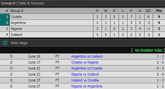 Với chiến thắng 2-1 trước Nigeria, Argentina đã cùng với đội bóng khác ở bảng D là Croatia giành tấm vé vào chơi ở vòng 1/8 World Cup 2018.
