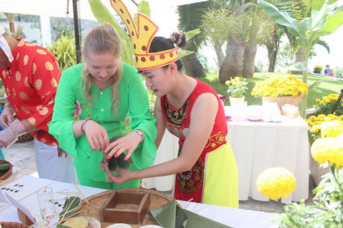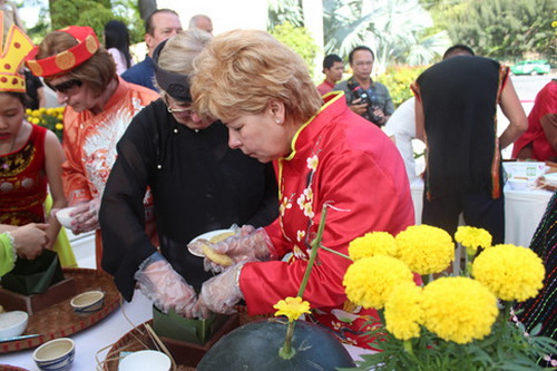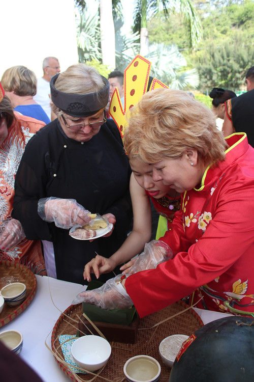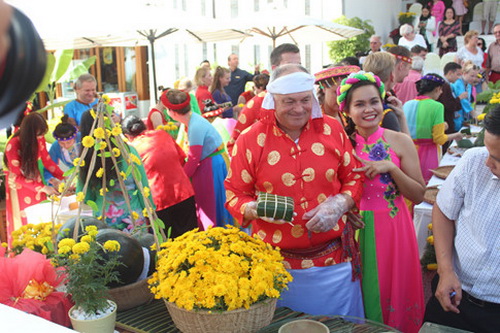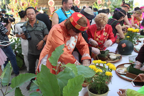 Tham gia gói bánh, cặp đôi Susan Webber (Úc) và Steven Chung (Hồng Kông) cho biết, thích rất tết Việt Nam vì có câu đối đỏ, bánh chưng, trồng hoa, làm mứt... khiến du khách hiểu rõ về văn hóa đậm chất dân gian của VN.