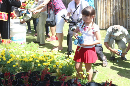 Trong những ngày Tết nguyên đán Đinh Dậu cận kề, nhiều du khách đã hòa mình trong trong áo dài, khăn đóng, áo tứ thân hoặc trang phục cổ truyền của các dân tộc Việt Nam để cùng gói bánh chưng, thưởng thức không khí Tết.