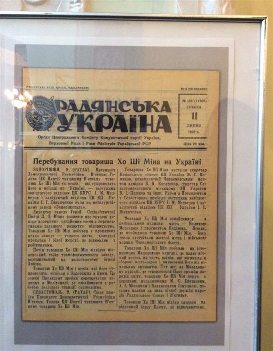 Một trang báo của Đảng Cộng sản Ucraina số ra năm 1959 co đăng bài viết về Chủ tịch HCM