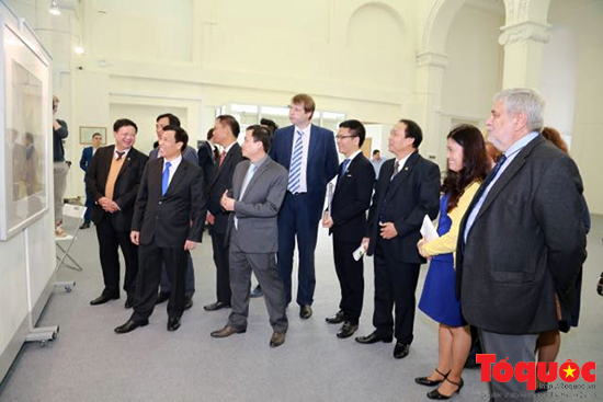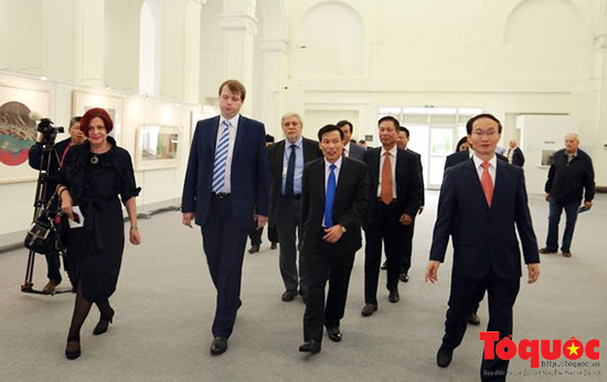 Các quan khách Nga và Việt Nam tham quan Triển lãm tranh lụa