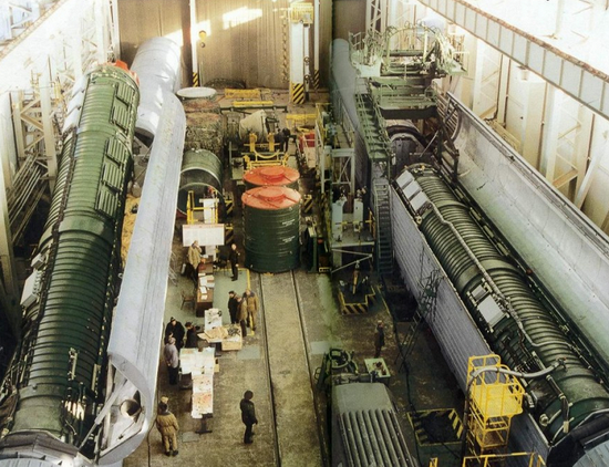 Tháo dỡ tên lửa RT-23 Molodets khỏi đoàn tàu hạt nhân. (Ảnh: CCO)