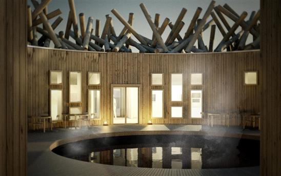 Khu vực spa được thiết kế gồm một phòng trị liệu, bốn phòng tắm hơi, một bể tắm nước nóng và một bể tắm nước lạnh ngoài trời. Khu vực trung tâm của khu spa hình tròn này là một khoảng không ngoài trời nơi mà các du khách có thể tắm nắng hoặc nhảy vào bể tắm nước lạnh (được duy trì ở nhiệt độ 39 độ F) dưới ánh sáng của cực quang.
