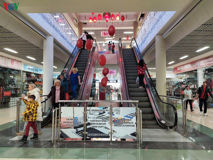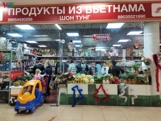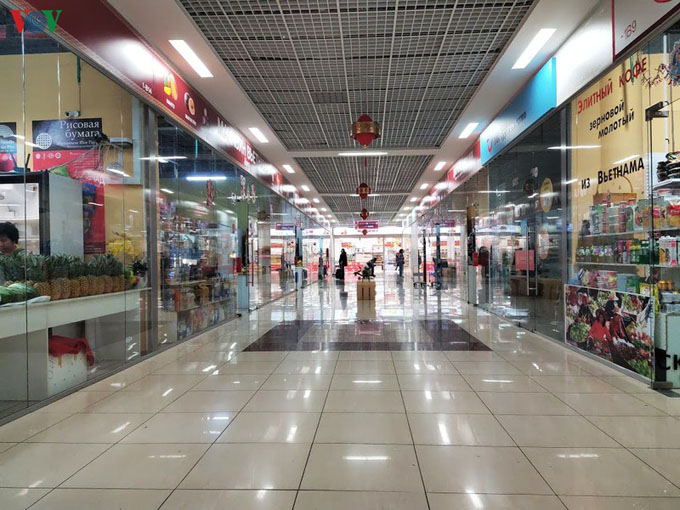Tầng trệt của Trung tâm thương mại với những cửa hàng thực phẩm - trái cây Việt Nam không chỉ thu hút rất đông người Việt mà còn cả khách hàng Nga...
