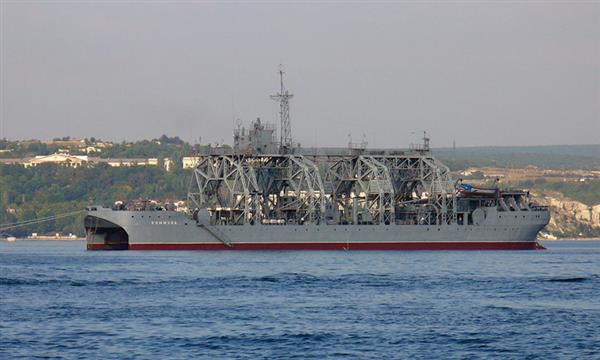Trong ảnh là tàu ngầm cứu hộ AS-18 Pzis thuộc Hạm đội Biển Đen có thể được triển khai từ tàu Kommuna. AS-18 Pzis được thiết kế để có thể tham gia cứu hộ mọi loại tàu ngầm của Hải quân Nga hiện tại.