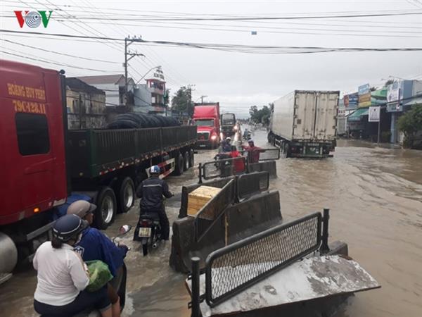 Quốc lộ 1A qua thành phố Cam Ranh, tỉnh Khánh Hòa hiện đang bị ngập sâu, ảnh hưởng đến việc đi lại của các phương tiện tham gia giao thông. Nặng nhất là đoạn QL1A qua địa bàn phường Cam Nghĩa, nước ngập đến 0,5m- 1m, chảy xiết. Nhiều nơi nước đã tràn vào nhà dân ven đường. Ở đoạn nước sâu, xe máy hầu như không di chuyển được.