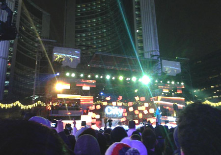 Chờ đợi năm mới về để chia sẻ với độc giả Dân trí không khí tiễn năm cũ tại đất nước lá phong, một trong những vùng đất đón 2013 muộn nhất trên toàn thế giới, bạn Vương Gia Vinh đã cùng Du học Dân trí khép lại chuyến du hành với các bạn du học sinh Việt Nam trong đêm giao thừa với những hình ảnh ấn tượng từ quảng trường trung tâm Toronto.