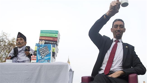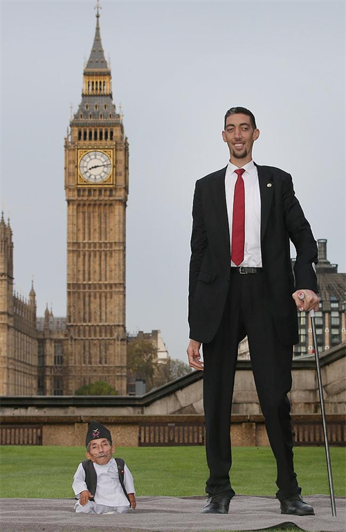 Người cao nhất và người lùn nhất thế giới đã có cuộc hội ngộ thú vị khi tham gia lễ kỷ niệm 60 tuổi của Tổ chức kỷ lục thế giới Guinness hôm qua 13/11.