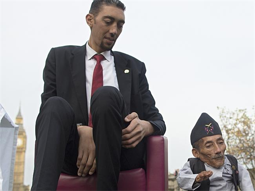 Người cao nhất và người thấp nhất thế giới đều trân trọng nỗ lực của nhau - Ảnh: AFP