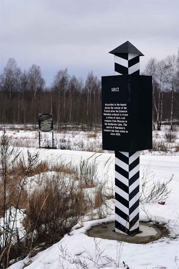 Tấm biển nói hoàng đế Napoleon từng ra lệnh đem giấu kho vàng khổng lồ xuống hồ Semlevskoe.