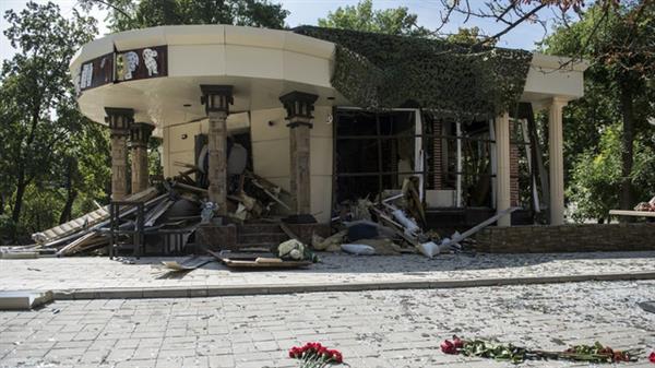 Bên ngoài quán cafe nơi ông Aleksandr Zakharchenko bị ám sát (Ảnh: Sputnik).