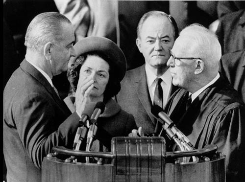 Lyndon B. Johnson (giữa) nhậm chức ngày 22/11/1963 sau khi Tổng thống John F. Kennedy bị ám sát.