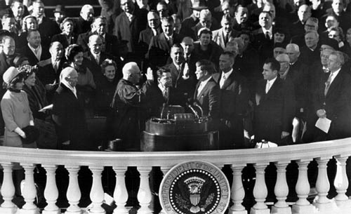 Vị tổng thống đẹp trai, hào hoa John F. Kennedy tuyên thệ vào ngày 20/1/1961.