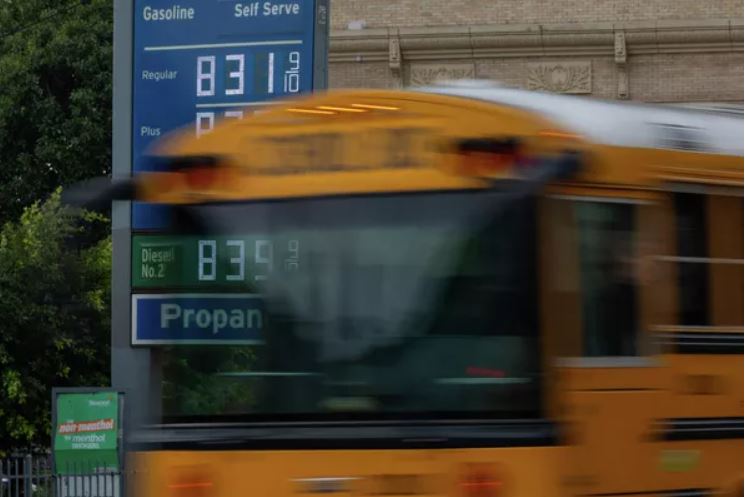 Giá xăng cao tại một trạm xăng ở trung tâm thành phố Los Angeles, Mỹ.