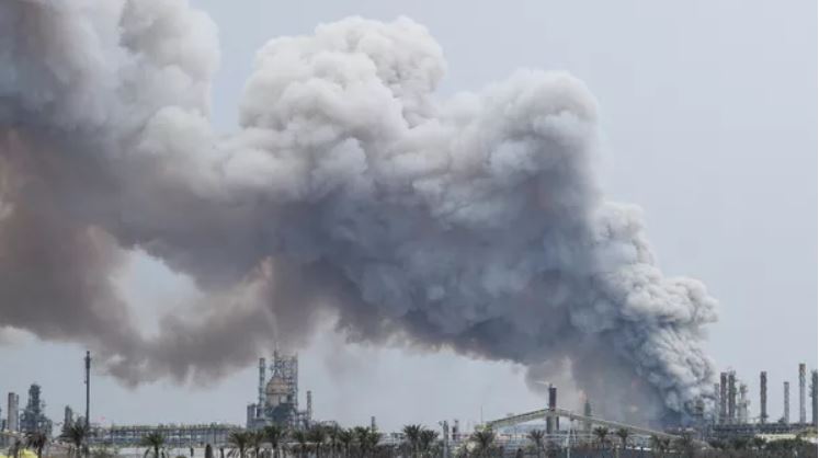 Khói bốc lên sau một cuộc tấn công vào nhà máy lọc dầu BAPCO trên đảo Sitra ở Bahrain.