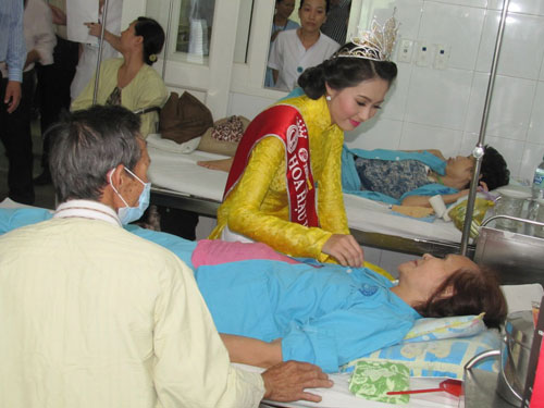 Hoa hậu Việt Nam 2012 Đặng Thu Thảo thăm bệnh nhân nghèo đang điều trị tại Bệnh viện Đà Nẵng vào chiều 26-8