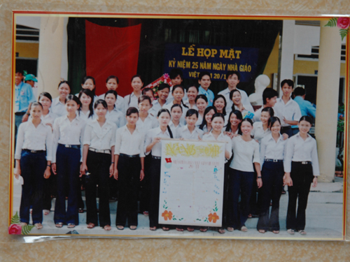 Thảo (đứng thứ 2, hàng thứ 2, từ trái sang) chụp ảnh cùng bạn học năm lớp 10. Ảnh: Song Hảo