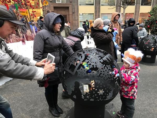 Tại một con ngõ nhỏ tiếp giáp với đường Tverskaya là hội chợ Giáng sinh với các quầy bán đồ lưu niệm.