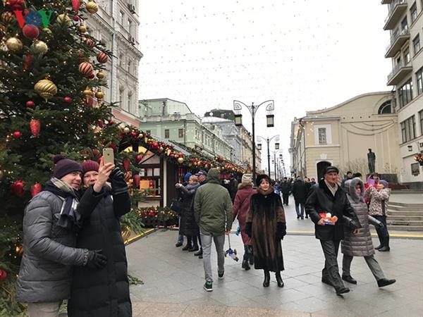 Thời tiết ấm bất thường kể từ 140 năm qua tại Moscow, với mức 1 độ C càng thuận lợi cho mọi người ra đường vui chơi, mừng Năm mới và Giáng sinh.
