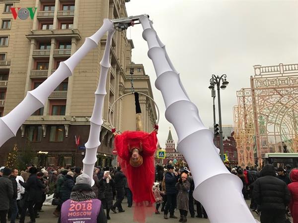 Để đáp ứng nhu cầu thăm quan, vui chơi của người dân và các vị khách thủ đô trong chuỗi ngày nghỉ năm mới dài tới 12 ngày, (từ 30/12 đến hết 10/1), tại rất nhiều công viên, quảng trường, các đường phố trung tâm ở Moscow (Nga) đang diễn ra các hoạt động lễ hội hết sức sôi động.