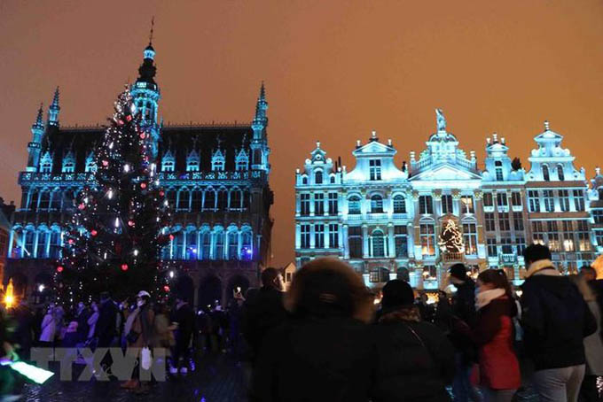 Quảng trường Lớn ở thủ đô Brussels lung linh trong sắc màu Giáng sinh. (Ảnh: Hương Giang/TTXVN)