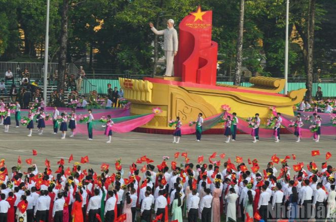 Nghi thức rước đuốc và thắp sáng đài lửa truyền thống cách mạng được thực hiện trước sự chứng kiến của hàng triệu người dân yêu nước trên Quảng trường Ba Đình và qua