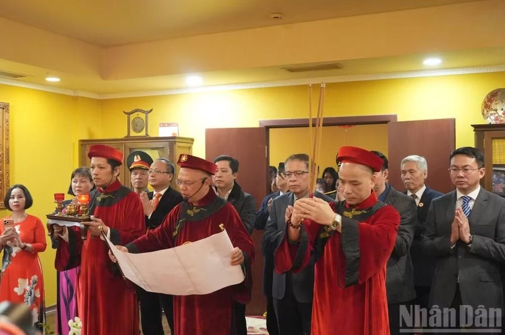 Trước bàn thờ Quốc Tổ Hùng Vương, lãnh đạo Liên hiệp Các tổ chức người Việt Nam tại Liên bang Nga đã chủ trì lễ tế và dâng hương tri ân công đức tổ tiên đã có công dựng nước, đánh đuổi giặc ngoại xâm, gìn giữ non sông gấm vóc.