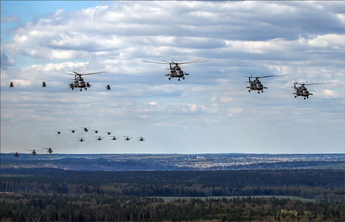 Cùng với các hoạt động chuẩn bị trên mặt đất, Không quân Nga cũng hoàn tất các buổi bay huấn luyện cuối cùng chuẩn bị cho lễ duyệt binh Ngày Chiến thắng Phát xít có quy mô lớn nhất trong lịch sử nước Nga hiện đại. Toàn bộ 143 máy bay thuộc các đơn vị Không quân Nga đã tập trung tại nhiều sân bay xung quanh thủ đô Moscow để chuẩn bị cho ngày lễ lớn.