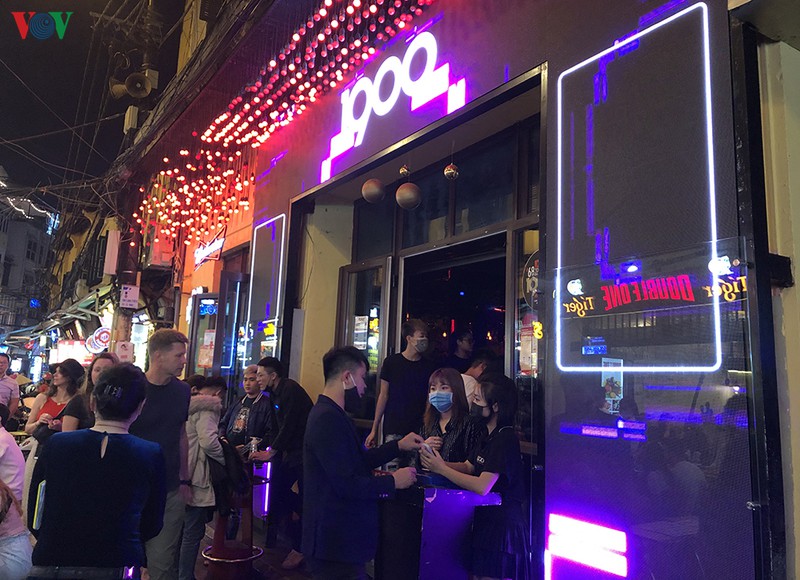 Các quán bar, quán rượu chật kín khách. Một số quán có nhân viên đứng yêu cầu khách sử dụng nước sát khuẩn, khử trùng tay trước khi vào trong.
