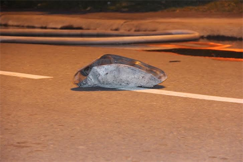Nhiều mảnh kim loại văng ra bên ngoài mỗi khi có tiếng nổ vang lên từ bên trong nhà kho.