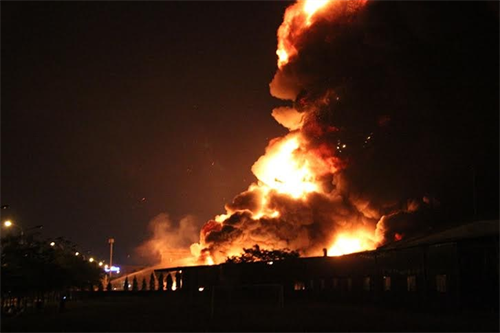 Ngọn lửa ngày một bùng phát, những tiếng nổ lớn liên tục vang lên.