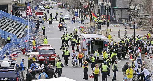 Lúc 1h45 phút giờ VN rạng sáng nay, các vận động viên và khán giả của giải marathon Boston đã phải trải qua những giây phút kinh hoàng khi có hai quả bom phát nổ ngay gần vạch đích. Một quả khác đã nổ ở gần thư viện John F. Kennedy chừng 1 giờ sau đó. Khung cảnh hỗn loạn xảy ra giữa đống khói lửa và đổ nát khiến tất cả hoảng sợ. Thời điểm hai quả bom đầu tiên phát nổ, cuộc đua đã diễn ra được 2 tiếng đồng hồ và đã có khoảng 27.000 người về đích.