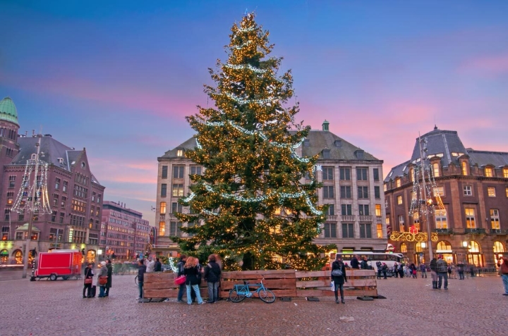 Sự chiếu sáng của Cây thông Noel trên Quảng trường Dam vẫn là một điểm nhấn trong lễ Giáng sinh ở Amsterdam.