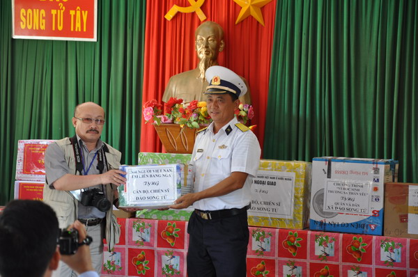 Tại đây, đại diện Hội người VN tại LB Nga là ông Võ Hoài Nam đã thay mặt Hội trao món quà của Hội cho quân và dân trên đảo là 1 thùng thuốc tây và đèn pin (trong tổng số 3 thùng hàng tặng cho 3 đảo lớn: Trường Sa lớn, Song Tử Tây, Sinh Tồn cộng với số tiền 2000 USD) Tuy là món quà nhỏ bé, nhưng là nguồn động viên chân tình đến với quân và dân trên đảo.