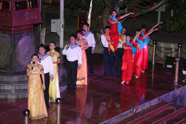 Đêm 12.5, tàu thả neo tại cảng Vũng Tàu. Chương trình giao lưu nghệ thuật của đoàn công tác số 9 trên boong tàu thật sôi nổi với đủ các tiết mục cả tự biên tự diến…