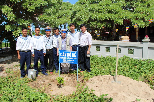 Tại đây đoàn công tác cũng đã làm lễ trồng cây bồ đề lưu niệm bên cạnh tượng đài Cột mốc đảo Sơn Ca và đặt bát hương cho khu vực sẽ làm nhà chùa trong tương lai.