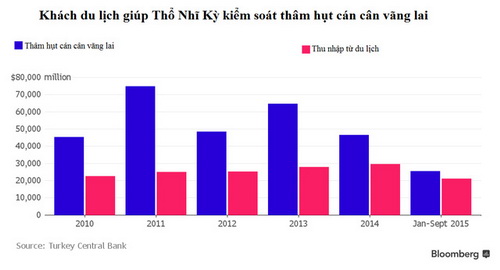 Trong 9 tháng đầu năm nay, ngành du lịch mang về cho Thổ Nhĩ Kỳ 21 tỷ USD và đóng vai trò quan trọng trong việc kiểm soát cán cân vãng lai.