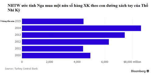 Thêm vào đó, Thổ Nhĩ Kỳ còn có thể xuất khẩu hàng hóa thông qua kênh phi chính thức là hàng hóa xách tay. Theo ước tính của NHTW Thổ Nhĩ Kỳ, Nga tiêu thụ khoảng một nửa tổng lượng hàng xuất khẩu qua con đường này.