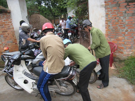 Từ đầu làng, ô tô, xe máy đã đỗ kín. Người dân kìn kìn đổ về nhà cô Chanh.