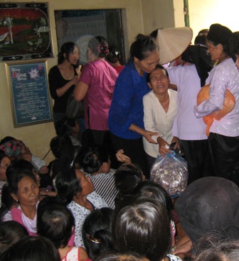 Bà già mù này đau yếu không có người thân đi kèm, nghe tin cũng vừa mò mẫm, vừa khóc