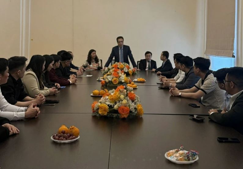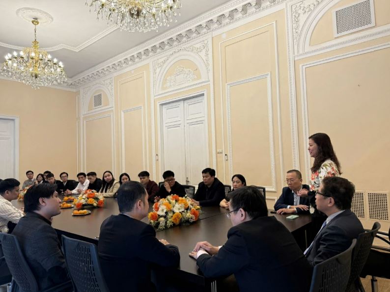 Trong không khí trang trọng này, Đồng chí Đặng Minh Khôi, Bí thư Đảng ủy, Đại sứ Việt Nam tại Liên bang Nga, cùng một số lãnh đạo Đại sứ quán, có buổi gặp gỡ, động viên và chúc mừng các đồng chí chuyên trách Đảng tại Văn phòng Đảng ủy, cùng đội ngũ đảng viên trẻ là du học sinh, sinh viên đang theo học tại các trường đại học hàng đầu của Nga - lực lượng trẻ được xem là “hạt giống đỏ” cho tương lai đất nước.