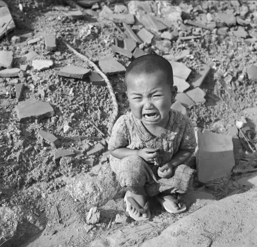 Đứa trẻ giữa đống đổ nát ở Hiroshima một năm sau vụ ném bom