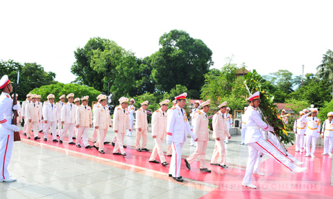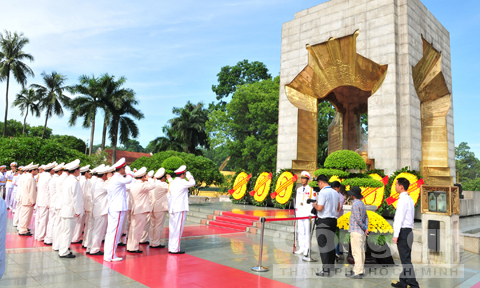 Lãnh đạo đảng, Nhà nước, Bộ Công an thắp hương viếng các anh hùng Liệt Sỹ tại đường Bắc Sơn-Ba Đình HN nhân kỉ niệm 70 ngày Truyền thống CANDVN (19/8/1945 - 19/8/2015) và Ngày hội toàn dân bảo vệ ANTQ (19/8/1945 - 19/8/2015) tại Hà Nội ngày 18-8-2015  (Ảnh: Quốc Huy):