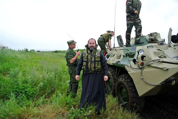 Khác với cha tuyên úy trong nhiều quân đội khác thường từ chối cầm súng chiến đấu mà chỉ làm nhiệm vụ cầu nguyện, cha tuyên úy trong quân đội Nga sẵn sàng cầm súng chiến đấu khi cần. Ảnh: Sina.