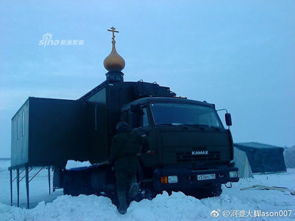 Cận cảnh một nhà thờ di động của quân đội Nga. Ảnh: Sina.
